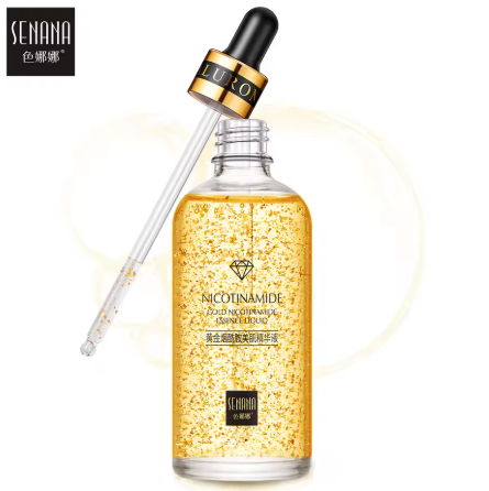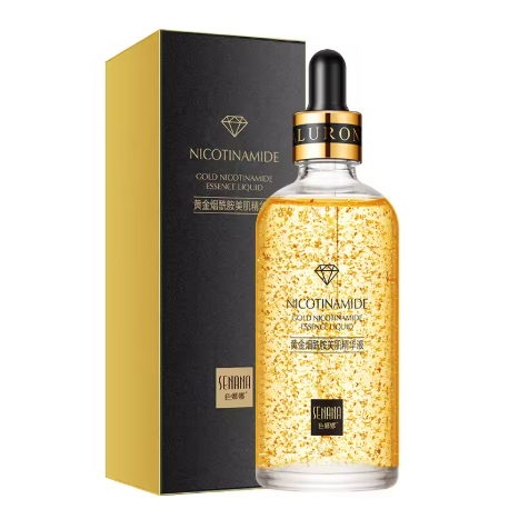 Het 24K Goud nicotinamide essence is een hoogwaardig huidverzorgingsproduct, verrijkt met 24-karaats goudfolie, hyaluronzuur, niacinamide (nicotinamide) en glycerine. Deze essence hydrateert, verstevigt en verheldert de huid, waardoor deze er stralend en jeugdig uitziet.